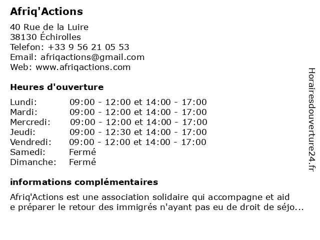 | Mardi | 09:00-12:00 et 14:00-17:00 |