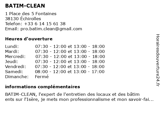 | Lundi | 07:30-12:00 et 13:00-18:00 |