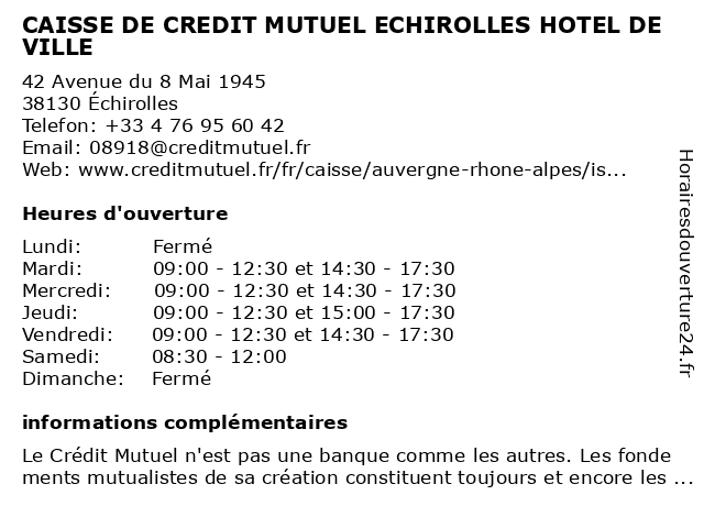 Termes de recherche pour CAISSE DE CREDIT MUTUEL ECHIROLLES HOTEL DE VILLE:de, ville, echirolles, hôtel, crédit, mutuel, caisse |