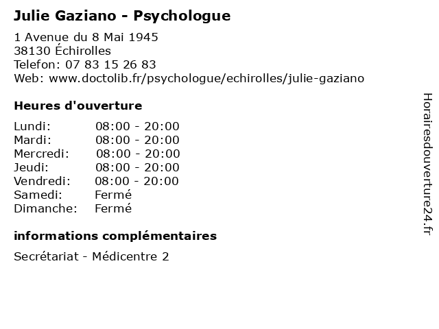 Termes de recherche pour Julie Gaziano - Psychologue:folie, julie, psychiatrique, psychiatrie, psychologue, psychiatre, gaziano |