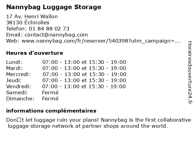 1 Nannybag Luggage Storage (Distance: 3,91 km) 5 Avenue Marcelin Berthelot, 38100 Grenoble luggage, nannybag, storage 2 Nannybag Luggage Storage (Distance: 4,83 km) 11 Cours Berriat, 38000 Grenoble luggage, nannybag, storage 3 Nannybag Luggage Storage (Distance: 5,25 km) 54 Avenue Félix Viallet, 38000 Grenoble luggage, nannybag, storage 4 Nannybag Luggage Storage (Distance: 5,41 km) 1 Rue Madeleine, 38000 Grenoble luggage, nannybag, storage 5 Nannybag Luggage Storage (Distance: 6,04 km) 442 Avenue De La Bibliothèque, 38400 Saint-Martin-D'Hères luggage, nannybag, storage 6 Nannybag Luggage Storage (Distance: 7,30 km) 324 Rue Du Huit Mai 1945, 38220 Vizille luggage, nannybag, storage |