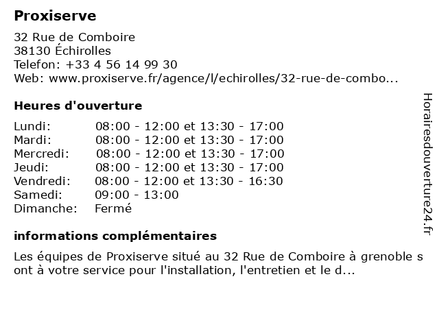 | Lundi | 08:00-12:00 et 13:30-17:00 |