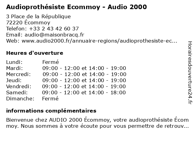 | Mercredi | 09:00-12:00 et 14:00-19:00 |
