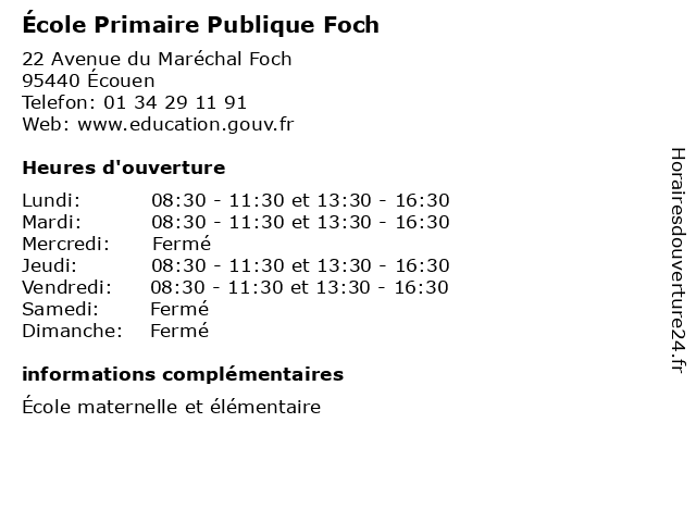 | Mardi | 08:30-11:30 et 13:30-16:30 |