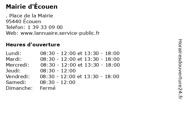 | Mardi | 08:30-12:00 et 13:30-18:00 |