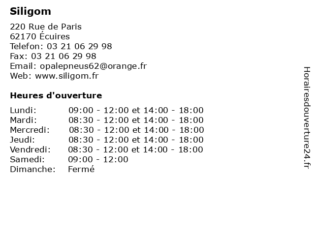 | Mercredi | 08:30-12:00 et 14:00-18:00 |