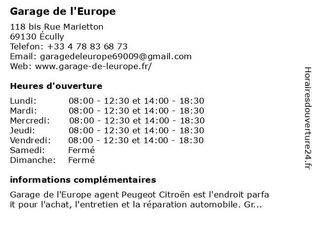 | Lundi | 08:00-12:30 et 14:00-18:30 |