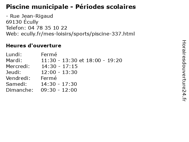 | Mardi | 11:30-13:30 et 18:00-19:20 |