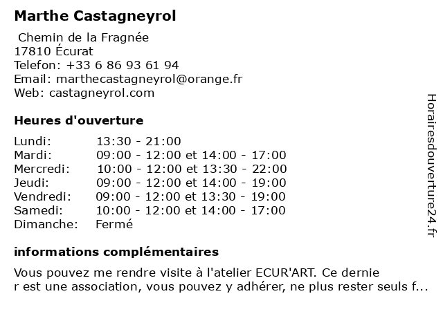 | Mercredi | 10:00-12:00 et 13:30-22:00 |