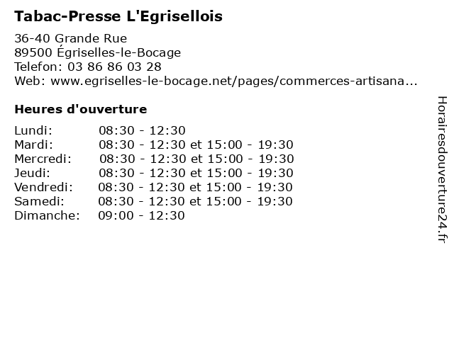Termes de recherche pour Tabac-Presse L'Egrisellois:tabac, presse, journaux, fdj, cigarette, l'egrisellois |