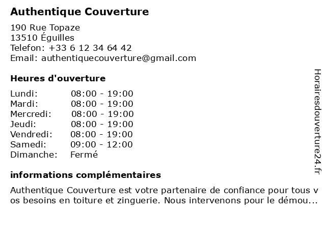 | Lundi | 08:00-19:00 |