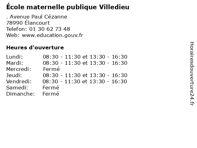 | Mardi | 08:30-11:30 et 13:30-16:30 |