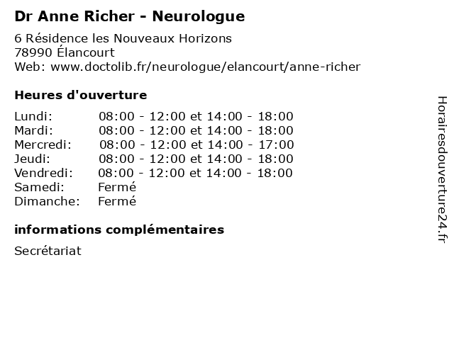 | Mardi | 08:00-12:00 et 14:00-18:00 |