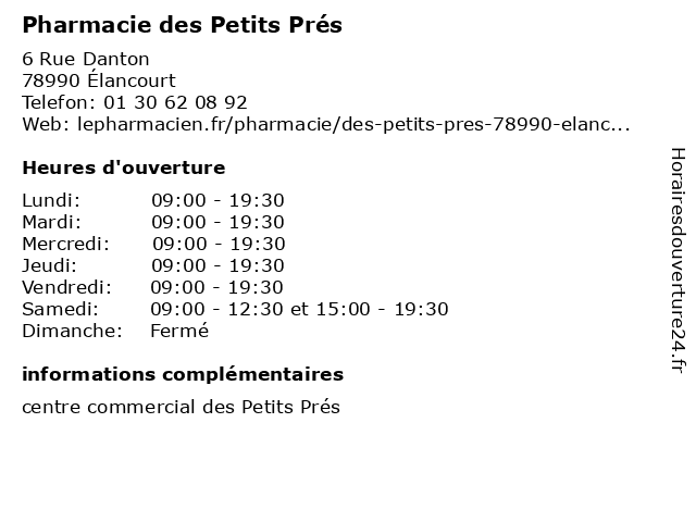| Samedi | 09:00-12:30 et 15:00-19:30 |