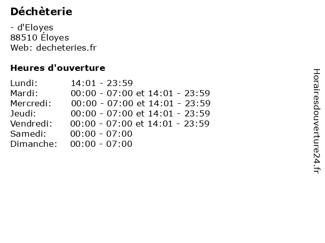 | Mercredi | 00:00-07:00 et 14:01-23:59 |