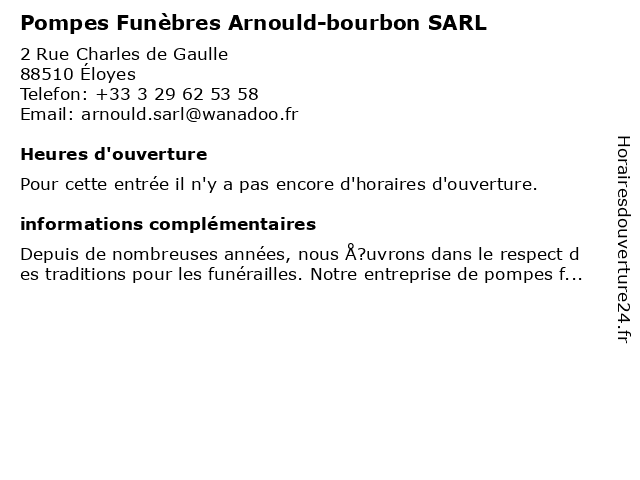 | Appeler Pompes Funèbres Arnould-bourbon SARL | |