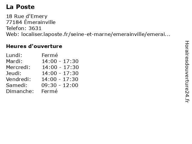 1 La Poste (Distance: 3,31 km) 27 Avenue Ardouin, 94420 Le Plessis-Trévise colis, express chronopost, expédition, la, poste, réexpédition internationale, service, suivi du courrier 2 La Poste (Distance: 4,84 km) 22 Rue de Melun, 77090 Collégien express chronopost, la, poste, réexpédition internationale 3 La Poste (Distance: 5,09 km) 5 Rue Rabelais, 94430 Chennevières-sur-Marne colis, express chronopost, expédition, la, poste, réexpédition internationale, service, suivi du courrier 4 La Poste (Distance: 7,11 km) 13 Rue de Villarceau, 77150 Lésigny colis, express chronopost, expédition, la, poste, réexpédition internationale, service, suivi du courrier 5 La Poste (Distance: 8,42 km) - Rue des Roses, 77177 Brou-sur-Chantereine express chronopost, la, poste, réexpédition internationale 6 |