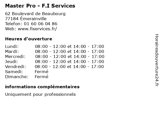 Termes de recherche pour Master Pro - F.I Services:équipement, services, master, pro, outillage, amenagement, professionnels, f.i |