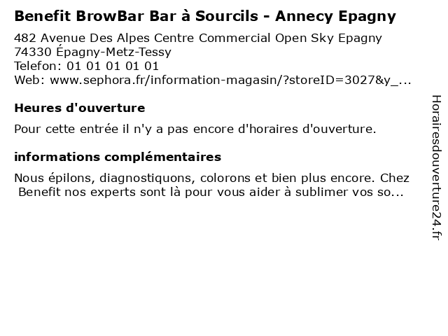 | Appeler Benefit BrowBar Bar à Sourcils - Annecy Epagny | |