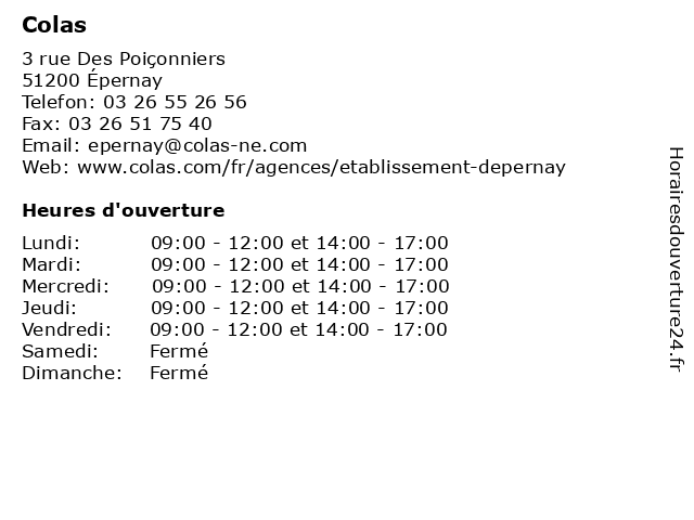1 Colas-Etablissement d'Epernay (Distance: 2,29 km) 3 Rue Des Poinçonniers, 51530 Mardeuil colas, d'epernay, entreprise générale de construction, etablissement 2 Colas -Etablissement d'Épernay (Distance: 4,64 km) 3 Rue Des Poiçonniers, 51200 Épernay colas, d'épernay, entreprise générale de construction, etablissement 3 Champagne Hubert Colas (Distance: 17,59 km) 8 Rue Cérès, 51150 Ambonnay brut, champagne, colas, doux, hubert, magnum, vente, vins 4 Eiffage Construction Champagne Ardenne (Distance: 23,39 km) 16 rue Clément Adler, 51685 Reims ardenne, champagne, conception, construction, eiffage, entretien, réalisation, rénovation, travaux 5 Méthode Réalisation Installation (Distance: 27,47 km) 14 Rue Denis Papin, 51100 Reims aluminium, chaudronnerie, installation, mri, métallerie, méthode, réalisation, serrurerie, tuyauterie 6 Eiffage Route (Distance: 28,27 km) 12 avenue André Margot, 51100 Reims conception, construction, eiffage, entretien, route, réalisation, rénovation, travaux |