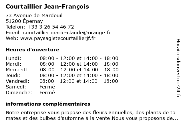 | Samedi | Fermé |