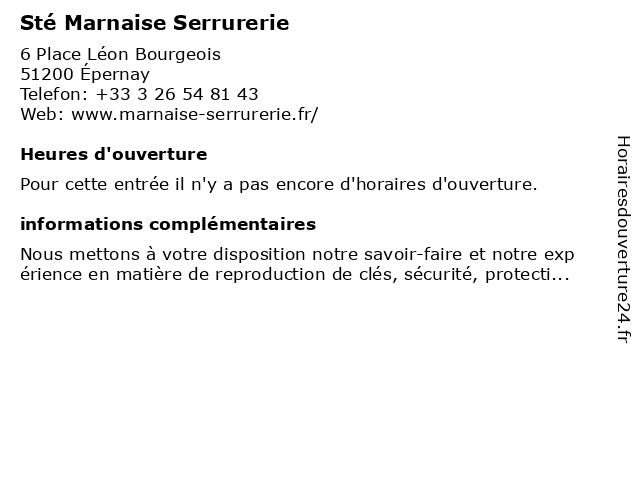 | Appeler Sté Marnaise Serrurerie | |