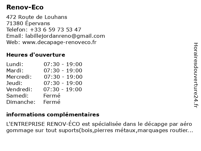 3 IB RENOV (Distance: 19,38 km) 2 Rue de la Liberté, 71350 Verdun-sur-le-Doubs charpente, couverture, ib, isolation, maçonnerie, menuiserie, peinture, ravalement, renov, revêtement, rénovation et construction de maisons en saône-et-loire 5 Dravert Renov Sas (Distance: 33,03 km) 6 Rue du Bois Bretoux, 71210 Saint-Laurent-d'Andenay dravert, renov, sas 6 Eco Pneu (Distance: 33,51 km) 22 Grande Rue du Faubourg Saint-Georges, 21250 Seurre automobile, eco, entretien, garage, montage, pneu, pneus, réparation, vidange |