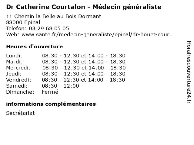 | Mercredi | 08:30-12:30 et 14:00-18:30 |