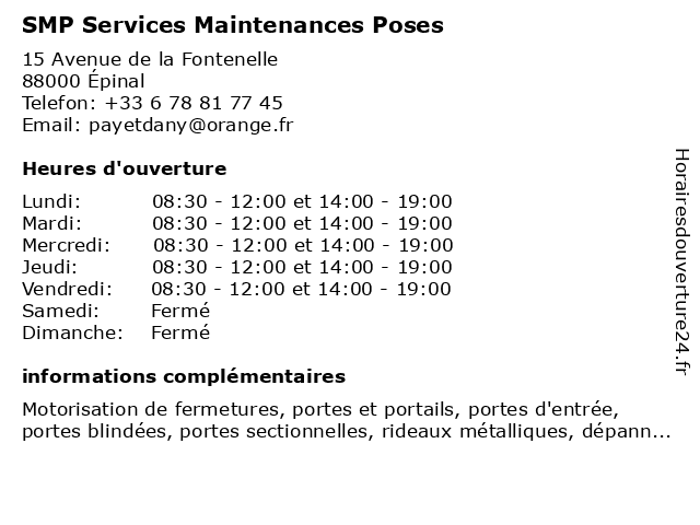 Lundi | 08:30-12:00 et 14:00-19:00 |