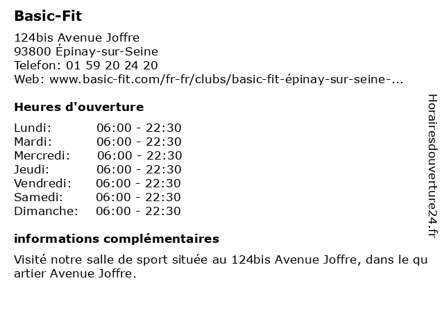 1 Basic-Fit (Distance: 3,77 km)50 Avenue Du Marechal Foch, 95100 Argenteuil basic, fit