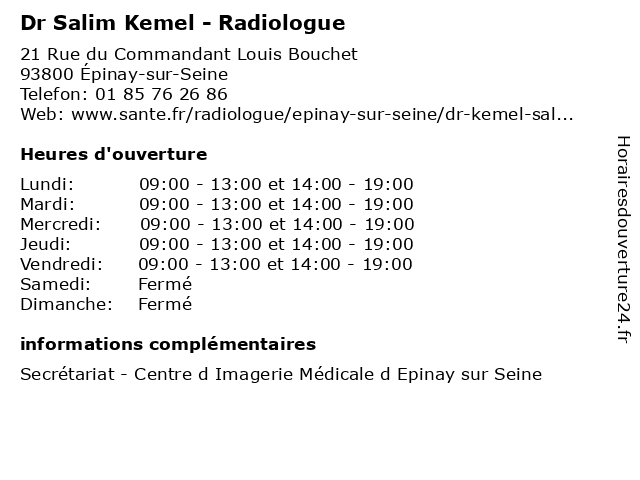 1 Dr Salim Kemel - Radiologue (Distance: 4,68 km) 340 Avenue d’Argenteuil, 92600 Asnières-sur-Seine consultation, docteur, dr, kemel, med, médecin, radiologue, salim, traitement 2 Dr Salim Kemel - Radiologue (Distance: 6,39 km) 108 Rue du Ruisseau, 75018 Paris consultation, docteur, dr, kemel, med, médecin, radiologue, salim, traitement 3 Dr Salim Kemel - Radiologue (Distance: 7,81 km) 83 Rue de l'Ourcq, 75019 Paris consultation, docteur, dr, kemel, med, médecin, radiologue, salim, traitement 4 Dr Salim Kemel - Radiologue (Distance: 8,51 km) 9 Rue Daru, 75008 Paris consultation, docteur, dr, kemel, med, médecin, radiologue, salim, traitement 5 Dr Salim Kemel - Radiologue (Distance: 19,91 km) 6 Avenue du Maréchal Franchet d'Esperey, 78000 Versailles consultation, docteur, dr, kemel, med, médecin, médecine, radiologue, salim, traitement 6 Dr Salim Zniber - Chirurgien-dentiste (Distance: 1,19 km) 44 Rue Abel Fauveau, 95170 Deuil-la-Barre chirurgien, dentaire, dentiste, dr, implantologie, parodontologie, salim, zniber |