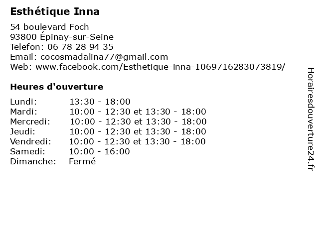 | Vendredi | 10:00-12:30 et 13:30-18:00 |
