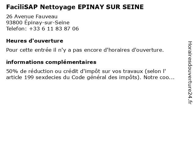 Appeler FaciliSAP Nettoyage EPINAY SUR SEINE | |