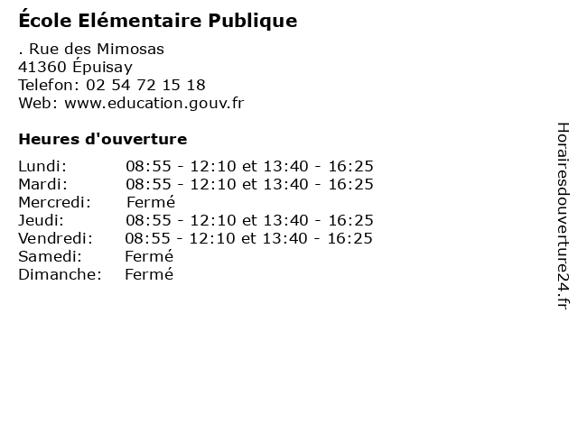 | Mardi | 08:55-12:10 et 13:40-16:25 |