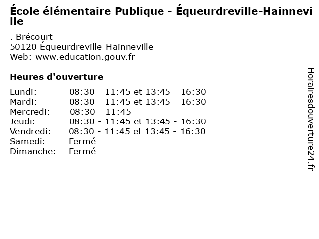 | Mardi | 08:30-11:45 et 13:45-16:30 |