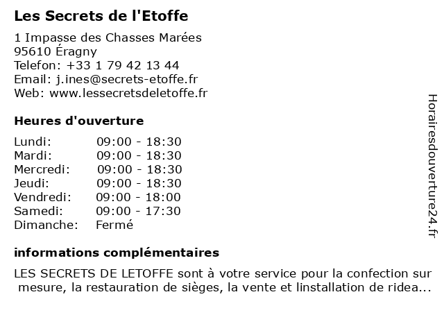 | Lundi | 09:00-18:30 |