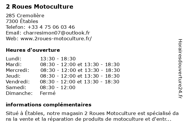 | Mardi | 08:30-12:00 et 13:30-18:30 |