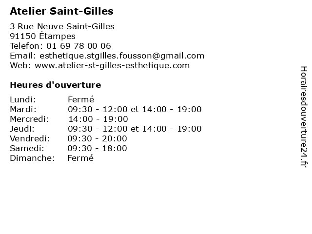 1 Marché de Saint-Gilles à Étampes (Distance: 0,31 km) - Place Saint-Gilles, 91150 Étampes de, frutas, gilles, hortalizas, marché, mercado, saint, verduras, étampes 2 Le Petit Saint Mars (Distance: 0,77 km) 43 Rue du Petit Saint-Mars, 91150 Étampes cigarette, fdj, journaux, le, mars, petit, presse, saint, tabac 3 Medecin Gilles Bilmont (Allergologue) (Distance: 1,03 km) 11B Rue de la Tannerie, 91150 Etampes allergologue, bilmont, docteur, gilles, medecin, sante, services 4 Saint Charles Diffusion (Distance: 1,75 km) 90 boulevard saint michel, 91150 Etampes charles, cheveux, coiffeur, diffusion, saint 5 Prigent Gilles Henri Gustave (Distance: 13,28 km) 6 Rue Du Verger, 91510 Lardy gilles, gustave, henri, prigent, restaurants 6 Saint Algue (Distance: 14,86 km) 3 Rue Saint-Pierre, 91410 Dourdan algue, beaute, coiffeurs visagistes, coiffure, saint, soleil  |