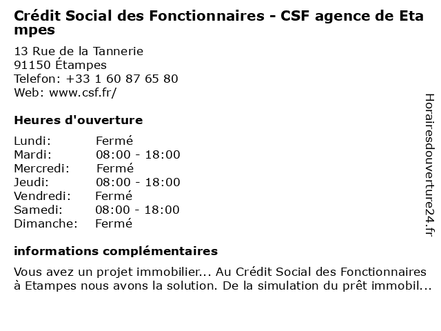 Termes de recherche pour Crédit Social des Fonctionnaires - CSF agence de Etampes:de, etampes, des, agence, crédit, social, fonctionnaires, csf |