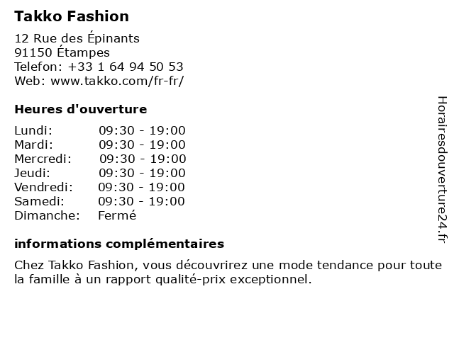 Description de l'entreprise :Alliez sport et styleEnvie de sport en 2024 ? Retrouvez toute notre collection sport chez Takko Fashion Étampes! Voir l'offre |