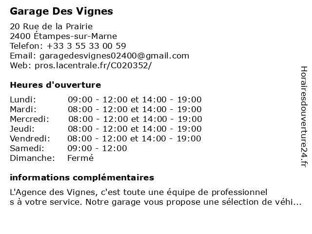 | Mercredi | 08:00-12:00 et 14:00-19:00 |