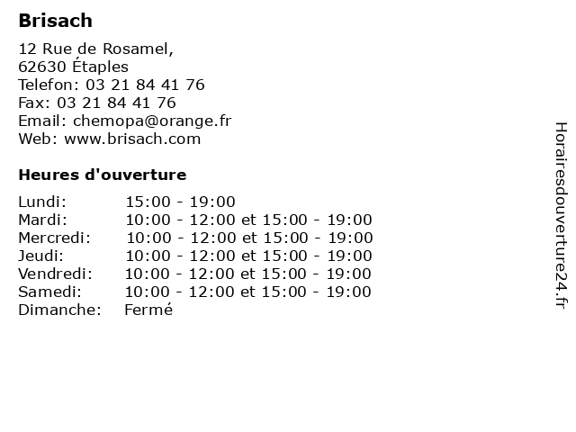 | Samedi | 10:00-12:00 et 15:00-19:00 |