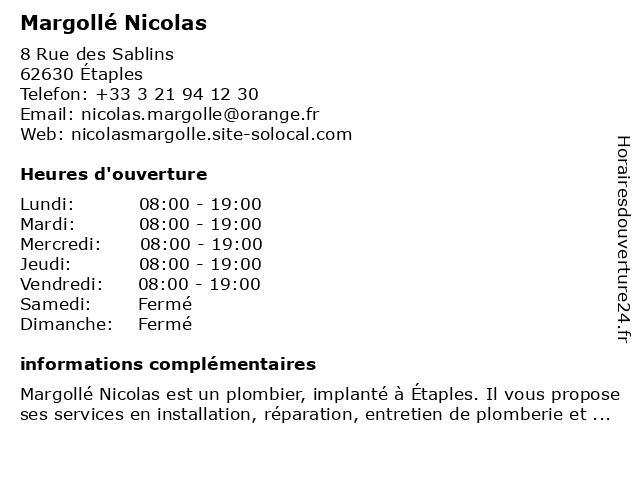 1 Nicolas (Distance: 0,50 km) 1 Rue Billiet, 62630 Etaples champagnes, hyper-supermarchés, nectars, nicolas, vente au détail de vin, vin 3 Nicolas Etaples sur Mer (Distance: 0,76 km) 1 Boulevard Billiet, 62630 Étaples champagnes, cidre, etaples, mer, nicolas, rhums, rosé, ruinart, spiritueux, sur, vins, vins blancs, vins rouges, whiskies 4 Boulangerie-Pâtisserie Nicolas (Distance: 1,48 km) 671 Avenue d'Etaples, 62780 Cucq boulangerie, nicolas, pains, pâtisserie, viennoiseries 5 Dr Nicolas Sauvage - Médecin généraliste (Distance: 5,73 km) 56 Route D'etaples, 62155 Merlimont docteur, dr, generaliste, généraliste, medical, médecin, nicolas, sauvage, soin 6 Dr Nicolas Robin - Médecin généraliste (Distance: 10,90 km) 140 Chemin Départemental 191, 62180 Rang-du-Fliers consultation, docteur, dr, généraliste, med, médecin, médecine, nicolas, robin, traitement |