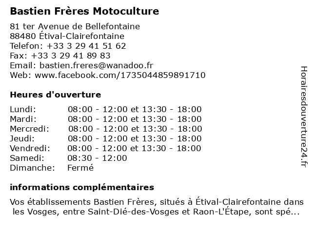 | Lundi | 08:00-12:00 et 13:30-18:00 |