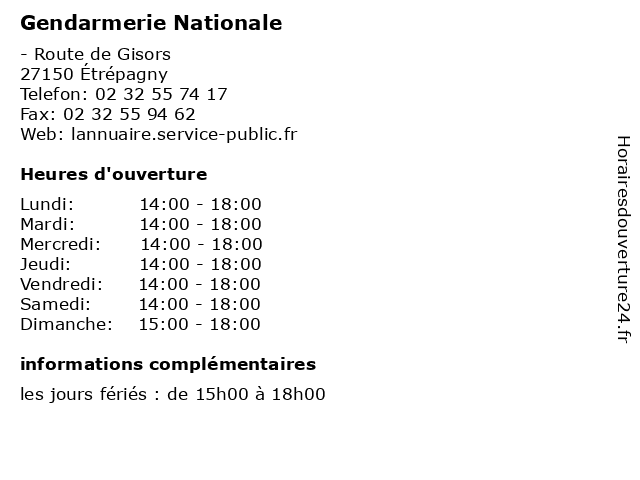 1 Gendarmerie Nationale (Distance: 11,43 km) 10 Rue de la Libération, 27140 Gisors brigade, commandant, communauté, gendarme, gendarmerie, nationale, proximité, sécurité 2 Gendarmerie Nationale (Distance: 15,06 km) 4 Rue du Four-à-Chaux, 27480 Lyons-la-Forêt brigade, commandant, communauté, gendarme, gendarmerie, nationale, proximité, sécurité 3 Gendarmerie Nationale (Distance: 16,15 km) 2 Rue de la Côte Blanche, 27630 Vexin-sur-Epte brigade, commandant, communauté, gendarme, gendarmerie, nationale, proximité, sécurité 4 Gendarmerie Nationale (Distance: 16,60 km) 21 Rue de la Libération, 27700 Les Andelys brigade, commandant, communauté, gendarme, gendarmerie, nationale, proximité, sécurité 5 Gendarmerie Nationale (Distance: 18,94 km) 24 Rue Emile Deschamps, 60240 Chaumont-en-Vexin brigade, commandant, communauté, gendarme, gendarmerie, nationale, proximité, sécurité 6 Gendarmerie Nationale (Distance: 19,17 km) 1 Rue du Centre, 76220 La Feuillie brigade, commandant, communauté, gendarme, gendarmerie, nationale, proximité, sécurité |