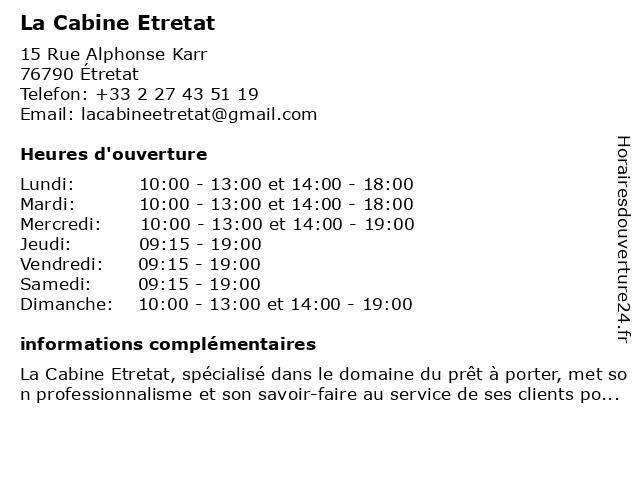 | Dimanche | 10:00-13:00 et 14:00-19:00 |