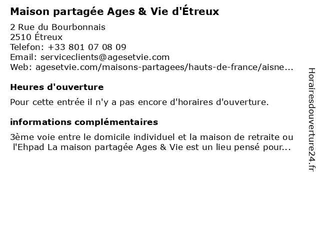 | Appeler Maison partagée Ages & Vie d'Étreux | |