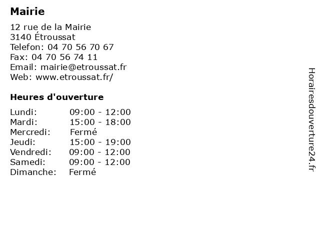 | Mercredi | Fermé |
