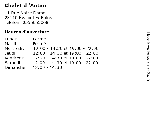 | Samedi | 12:00-14:30 et 19:00-22:00 |