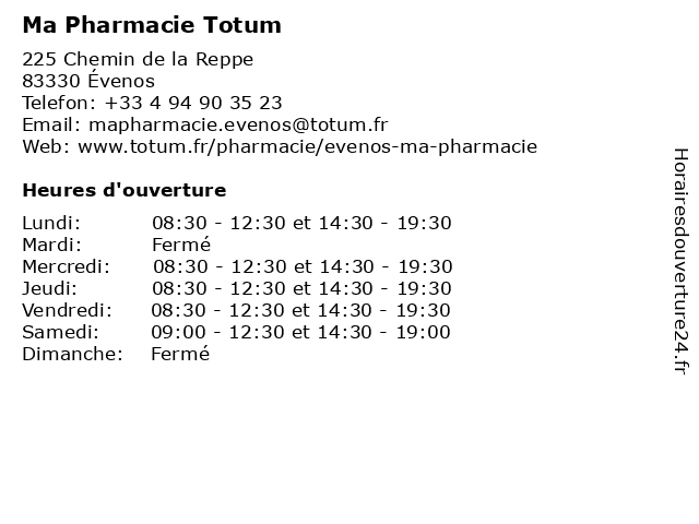 | Lundi | 08:30-12:30 et 14:30-19:30 |